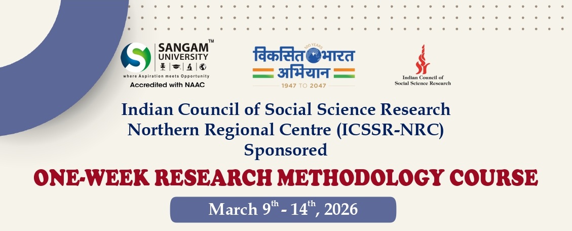 The School of Management Studies, Sangam University, Bhilwara is organizing a One-Week Research Methodology Course sponsored by ICSSR–NRC from 9th to 14th March 2026.